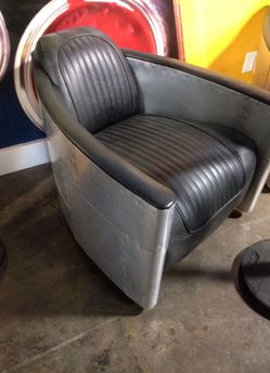 Delivery options in our coverage area. Drew Curved Leather Swivel Chair - Metal Base. Inspired by World War II fighter planes the chairs curvature is encased in aluminum which is bolted together for a cool and industrial appeal.